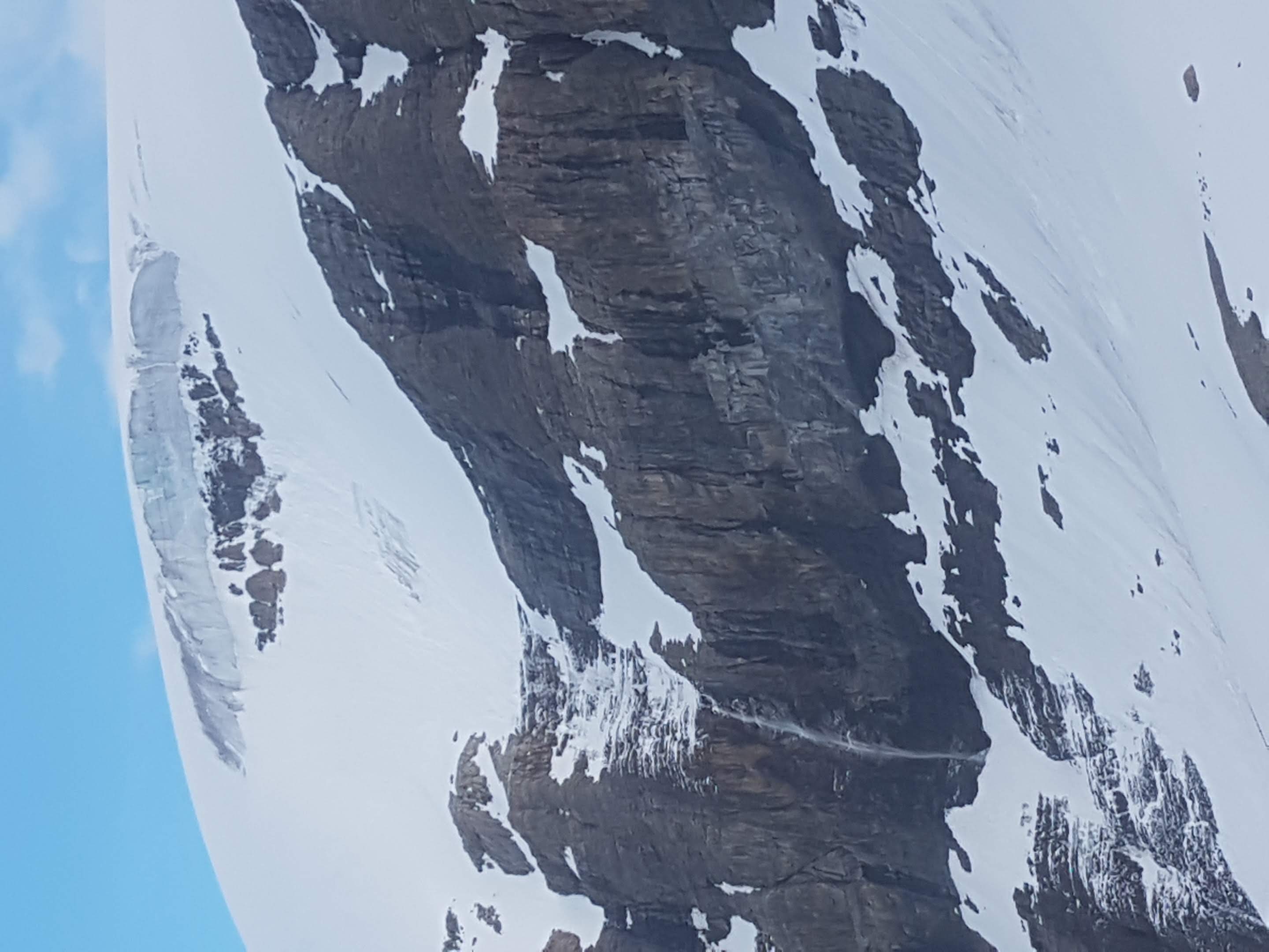 We also observed one notable Ice fall triggered avalanche off the Vulture Icefall above the approach trail to Bow Hut. This avalanche occurred around 930pm on Wed night. A sizable serac fall was able to pull out a pocket of snow (Slab) all the way to glacier ice. (See Photo) The debris came to within about 100m of the approach trail. A good reminder to give the headwall lots of respect on your approach to Bow Hut.