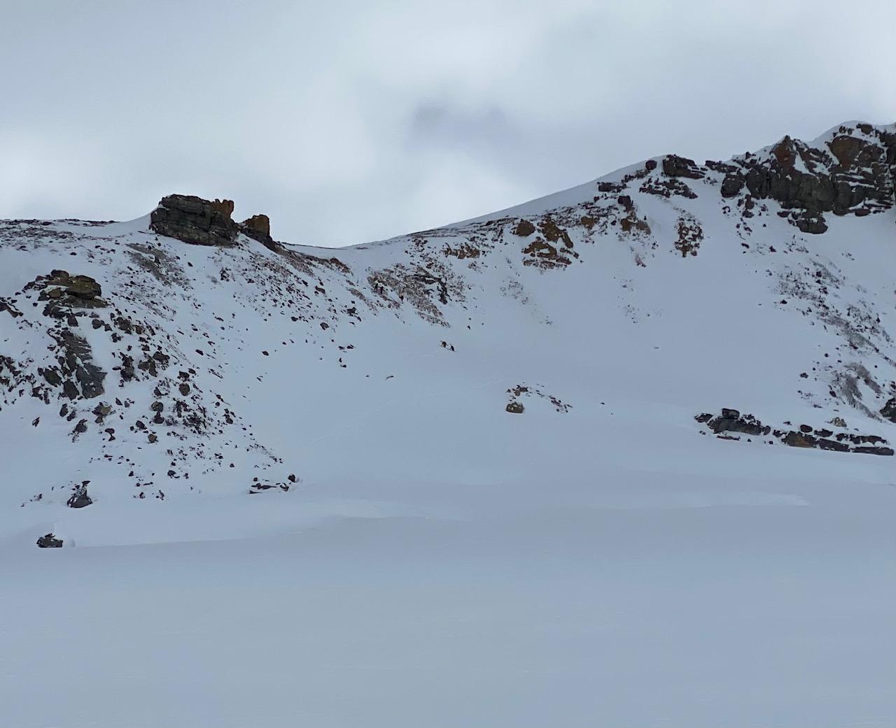 Other than a few small loose wet on step solar aspect, we witness a large serac fall on the night of Saturday to Sunday from Mont Balfour. The debris covered a large part of the bench.