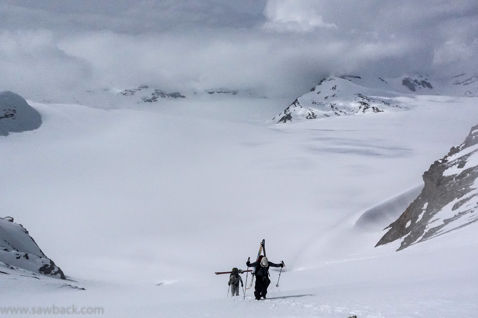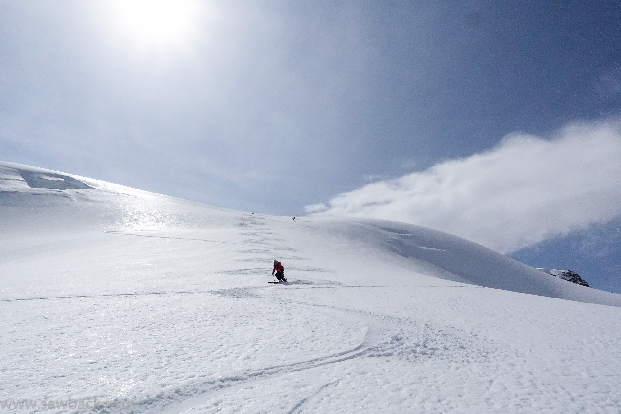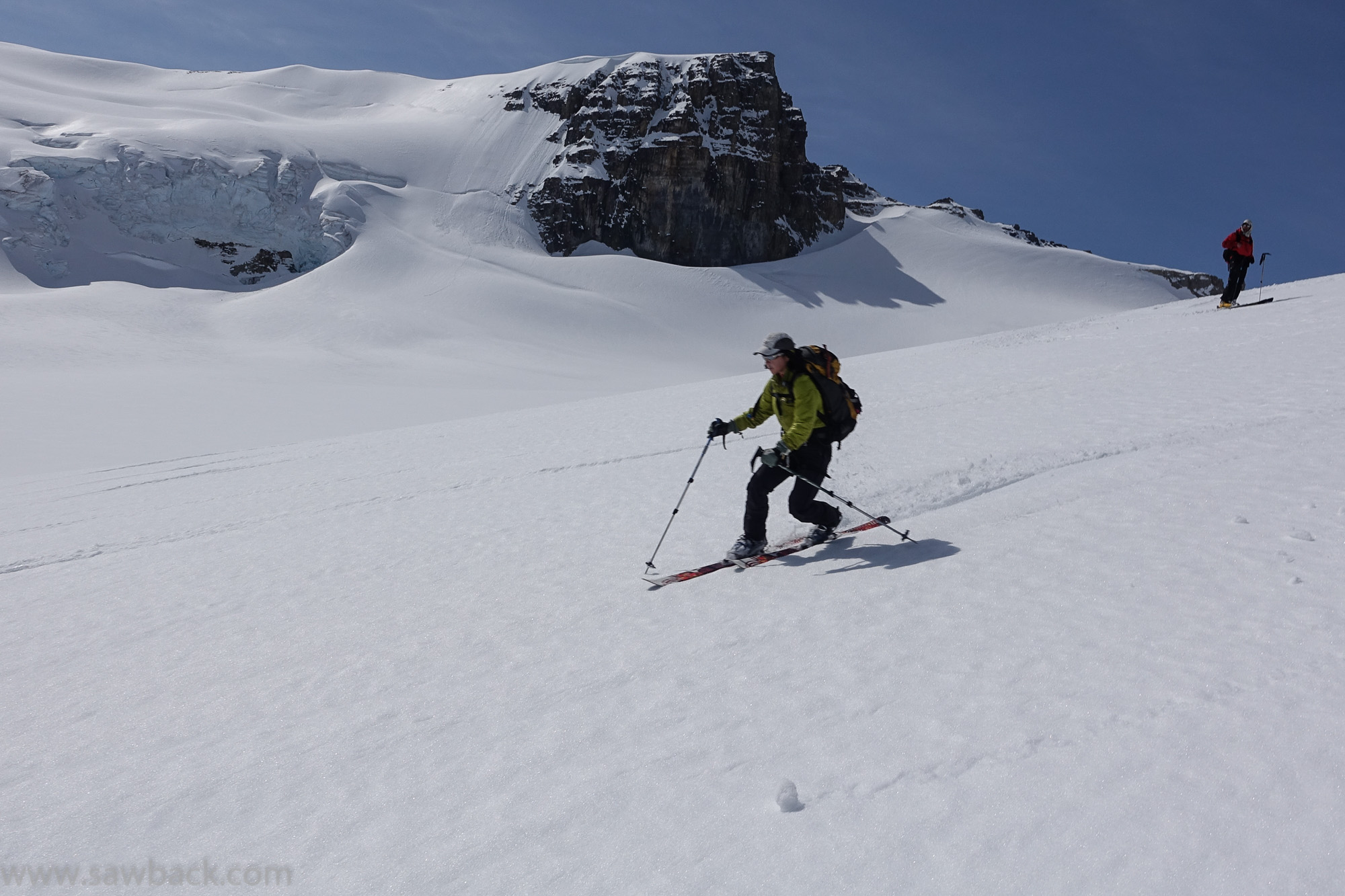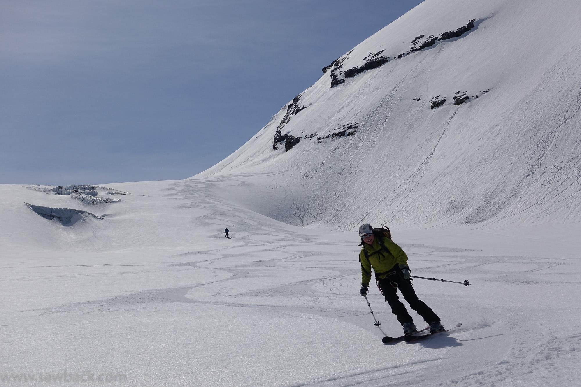 There are a couple of surprise crevasses to watch out for -- the one near the top of the Diablaret (right in the fall line) and another near the bottom of the Vulture Gl, well below the icefall and also in the fall line, come to mind.