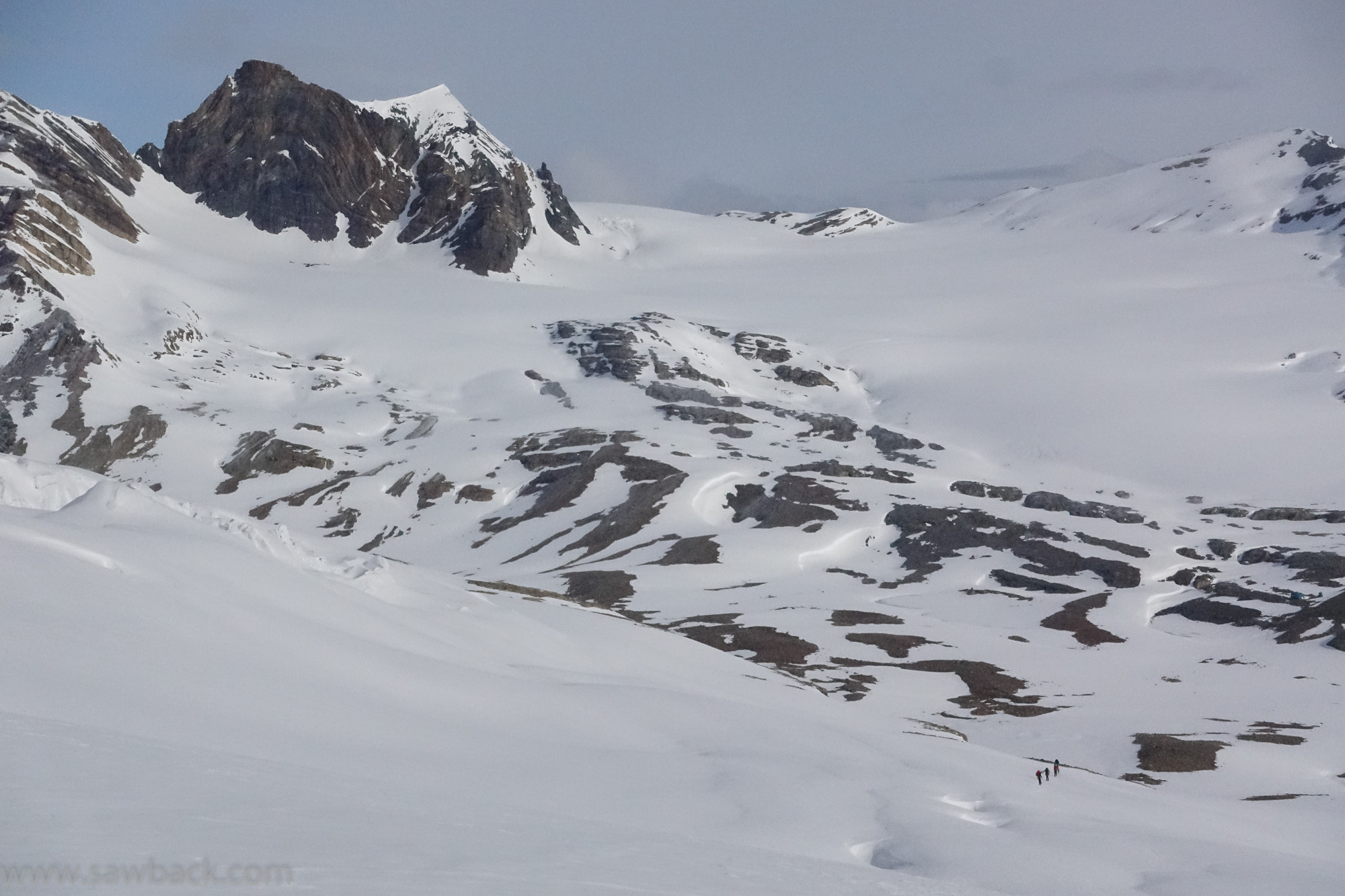 I guided a Wapta Traverse beginning at Peyto Lake trailhead early on April 21 and exiting Sherbrooke Lake yesterday April 26.
