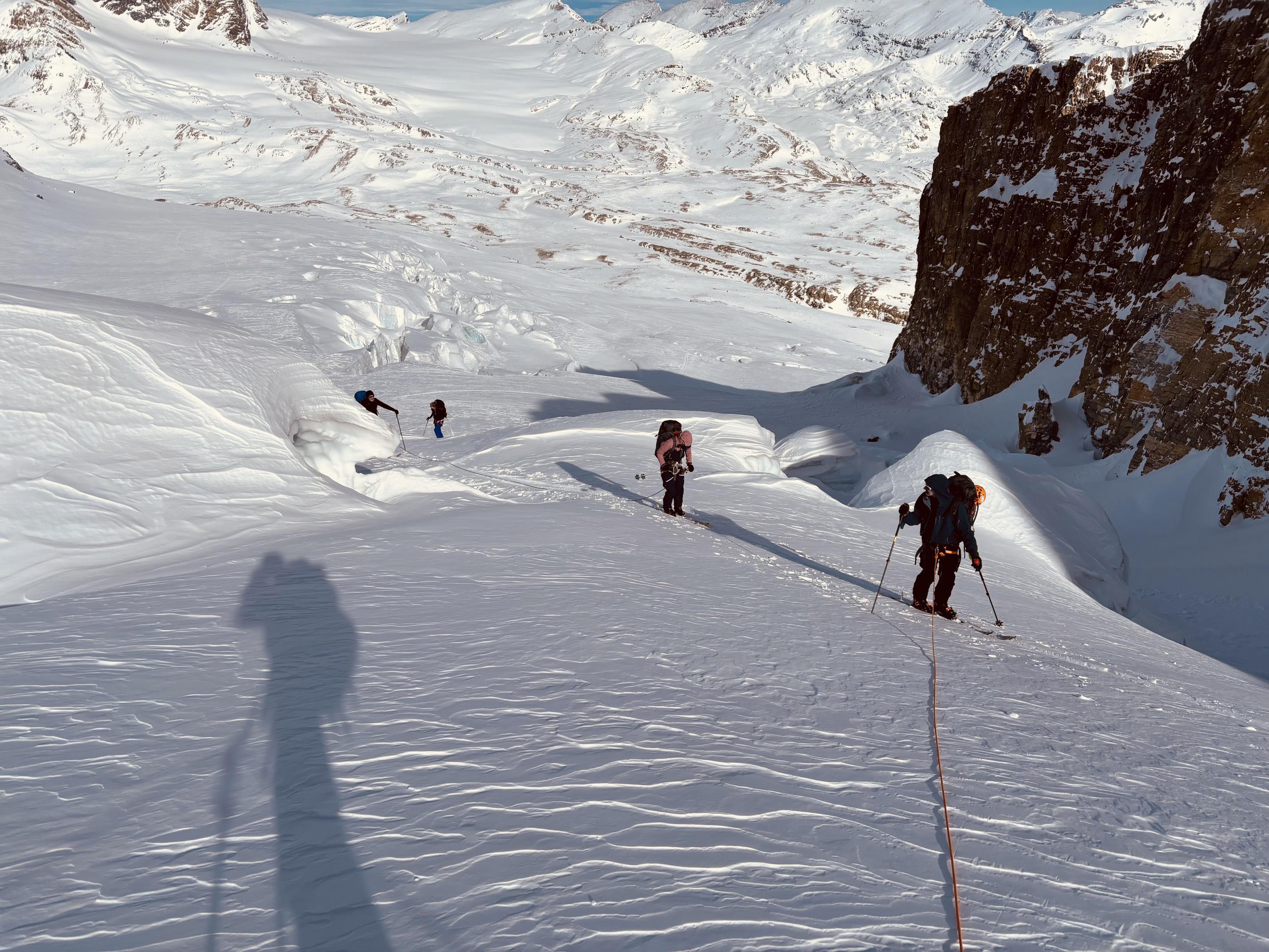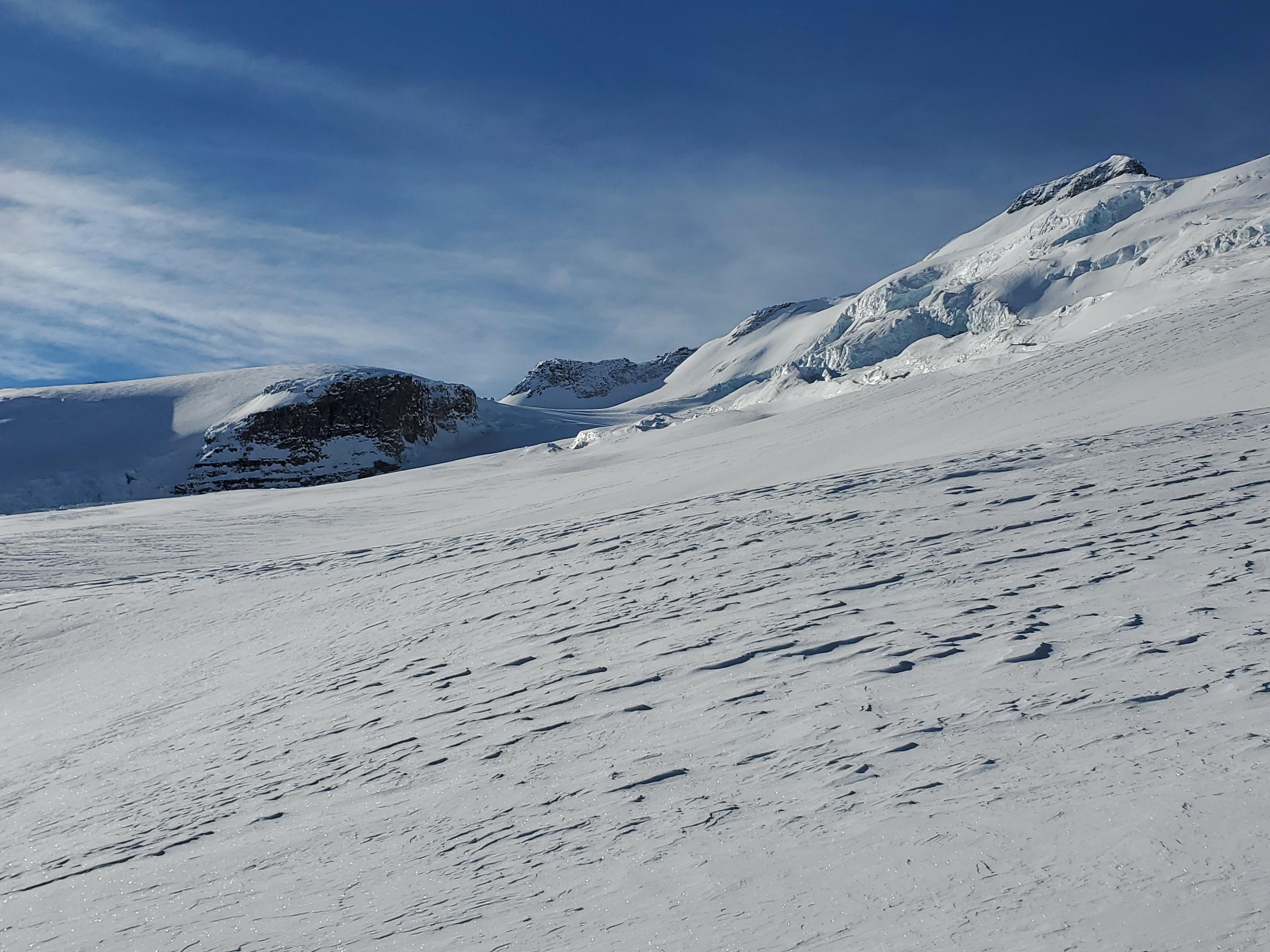 We found a sneak route on the left side of the crevasses close to the nunatak, en route to the Balfour High Col. This avoids a long end-run out right that forces you under the serac fall where previous track were. I've never seen an easy passage like this so close to the rock before. We were then able to climb on top of the nunatak right away and severely limit our exposure to the upper mountain where I have seen icefall hit uptracks in the past. Please spread the word to use this much safer option.