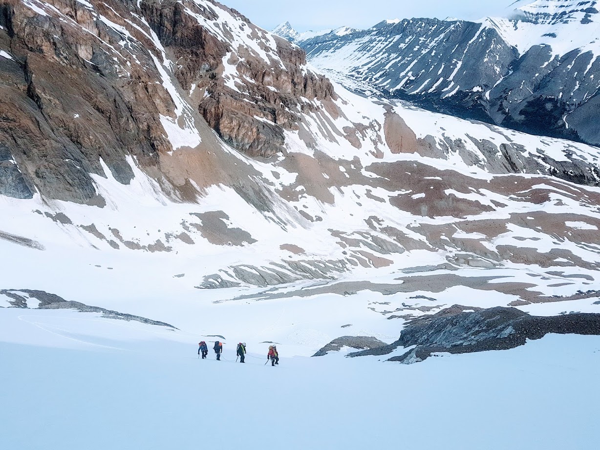 Larry Shiu and I have just returned from a seven day snow and ice climbing course based out of the Columbia ice field area. During the week we ascended various routes around Mt. Athabasca. In general there is still good snow coverage on the Glaciers and spotty snow patches down to 2000m. May 20 - 22 we experienced breakable crusts and challenging travel on snow below 2400m and excellent travel conditions above that elevation on the glaciers. Things changed however on May 23rd when warm temperatures and rain made travel on snow extremely difficult with knee to chest deep trail breaking in wet unconsolidated snow. These warm temperatures also brought with them an avalanche cycle of loose wet avalanches up size 1.5. Although we did not directly observe the higher elevations snow was definitely accumulating above 2700m.