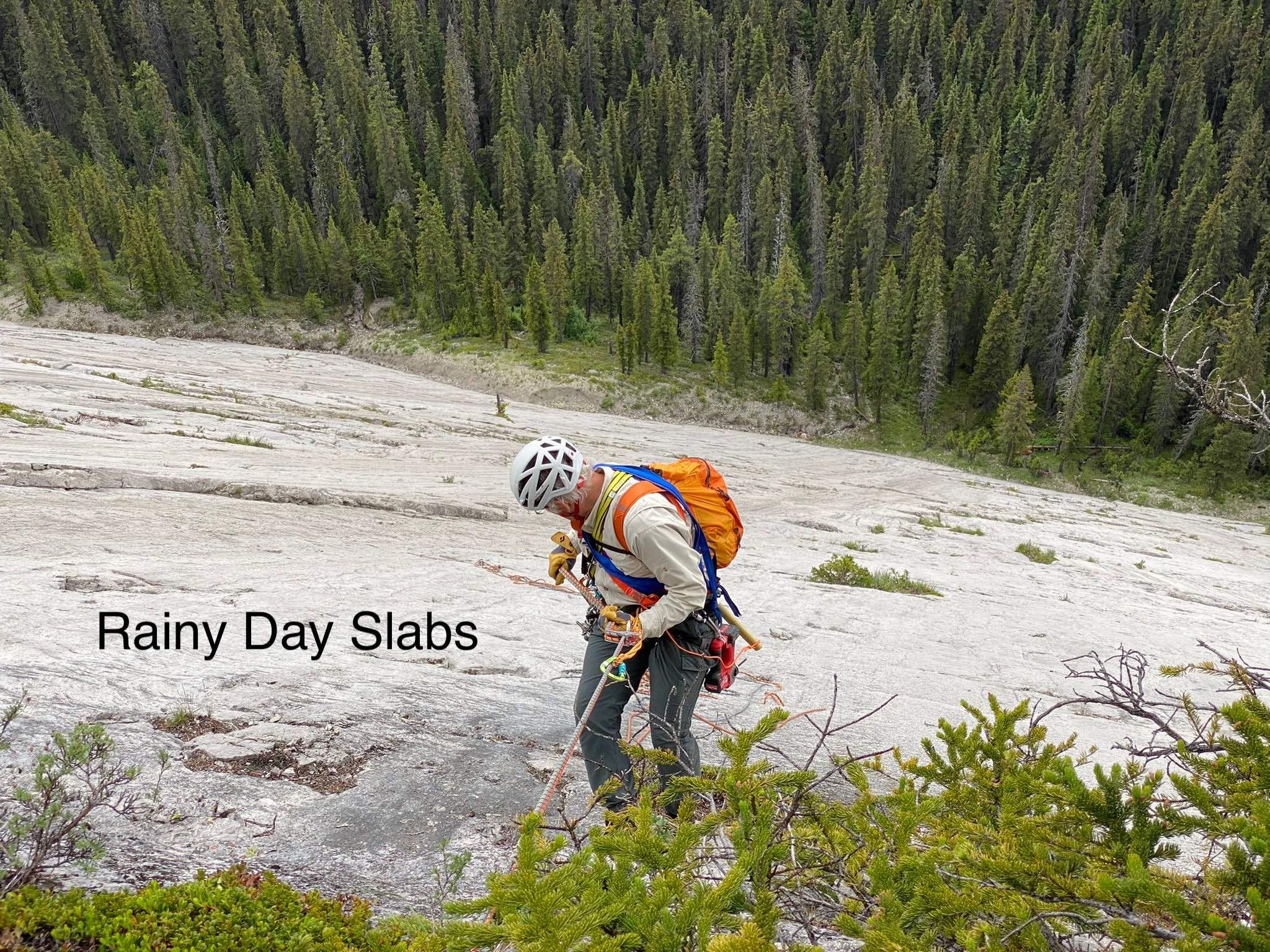 Rainy Day Slabs - Obvious Weakness 5.5 / 5.6. Despite the information online suggesting that the route has been retro bolted with bolts “well spaced”, I would have to strongly disagree. First of all, the bolts used to retro bolt this old route were low grade plated bolts (cheap junk) rather than stainless, which makes them suspect from the outset. But far worse are the fact that many of the upper pitches have only one or two bolts in an entire 30m pitch. This is hardly well spaced. On one pitch you don’t see the first bolt until you are 20m out. I climbing this route in the early 1980s and it hardly seems any better now. The crappy bolts do little to enhance the route. I would suggest giving the route a miss until it gets properly updated. It is now possible to rappel off after completing this route if you have two 60m ropes. Contact me for beta.