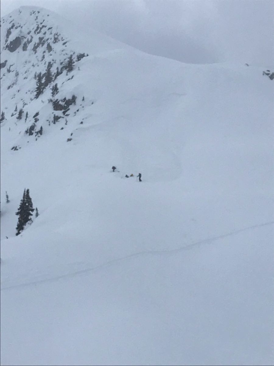 Snowing 2cm per hour when we left the area, and conditions could get interesting if this continues. Though the forecast doesn’t appear to be too precipitous. Avalanche Canada has downgraded their hazard ratings for this area tomorrow, and it seems about right.
