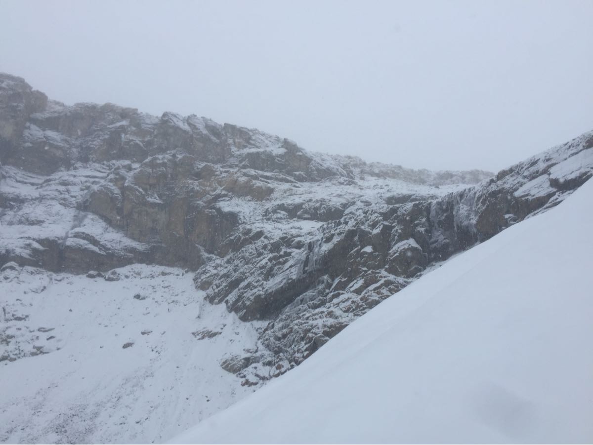 We were on the North Glacier at Mount Athabasca today. It snowed hard all day. There was about 15-20cm of new snow at the toe of the North Glacier at 2:30pm. No avalanche activity noted, but visibility was poor.