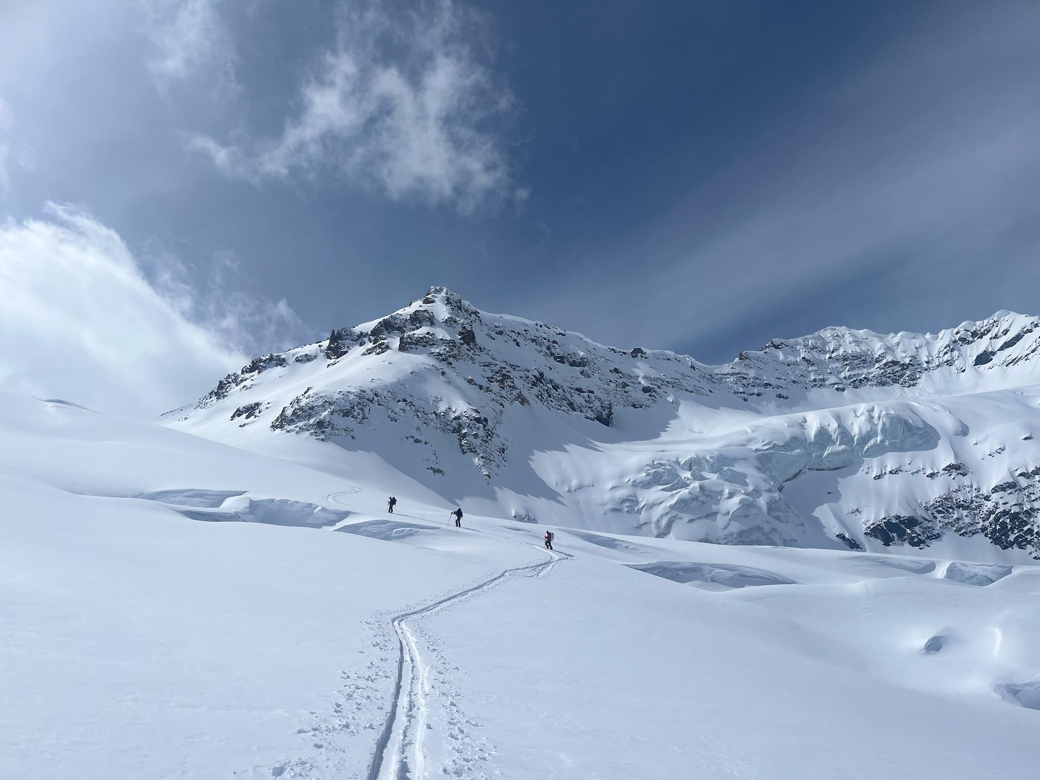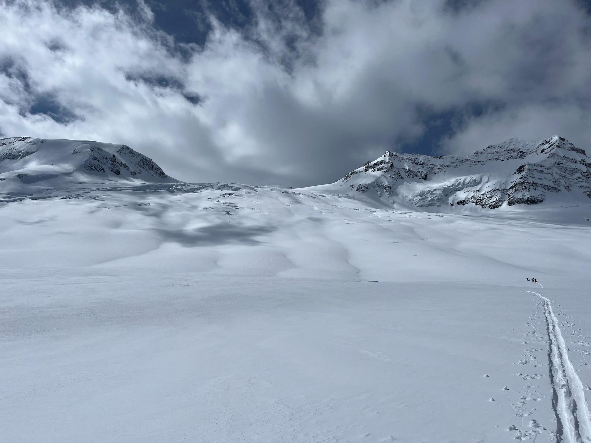 We were able to find soft powder on sheltered NW aspects, with PS of 10cm. Travel conditions were excellent, and we had good overnight recoveries during the whole trip.